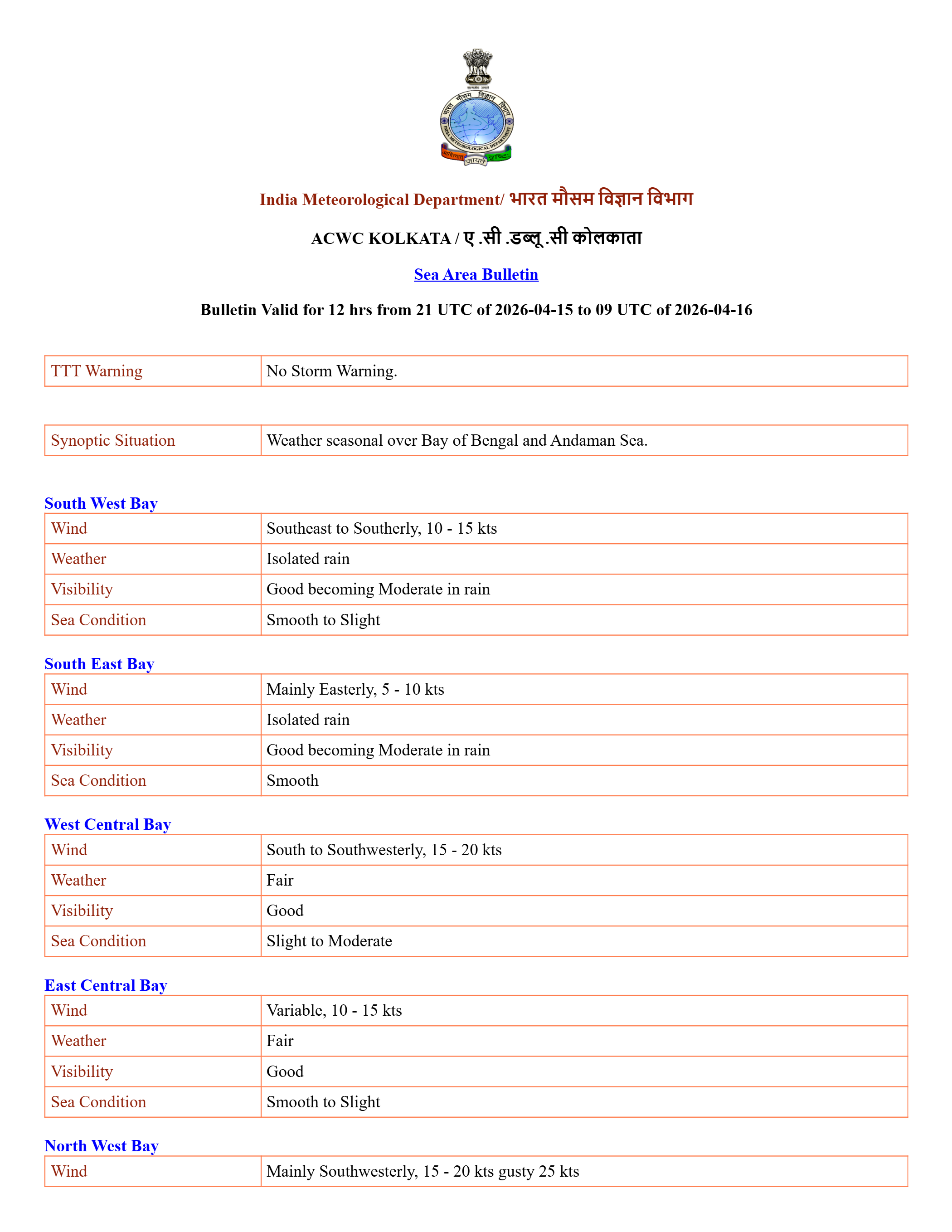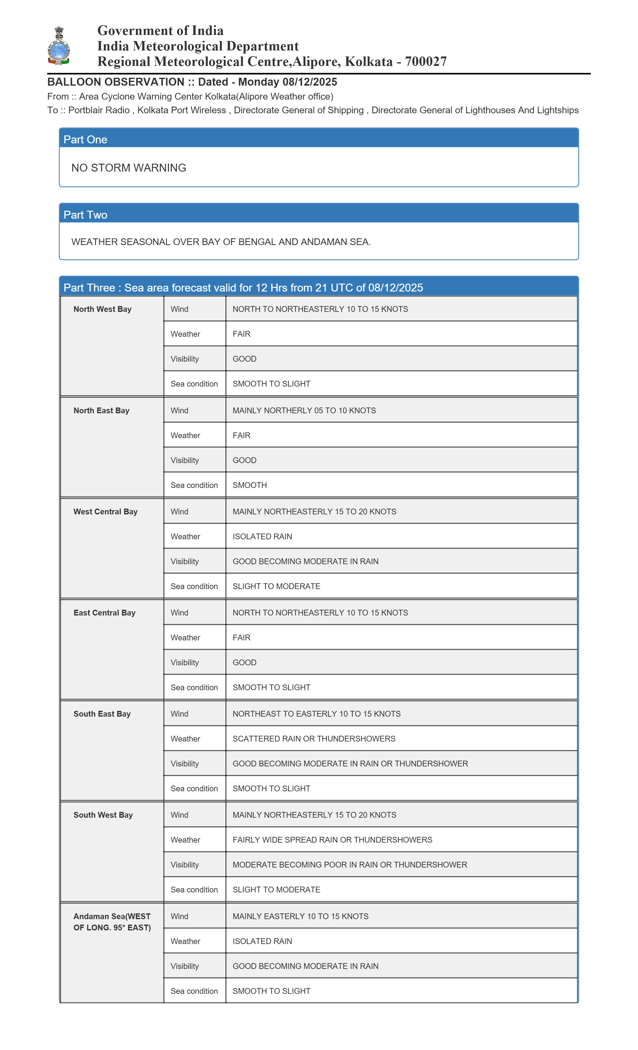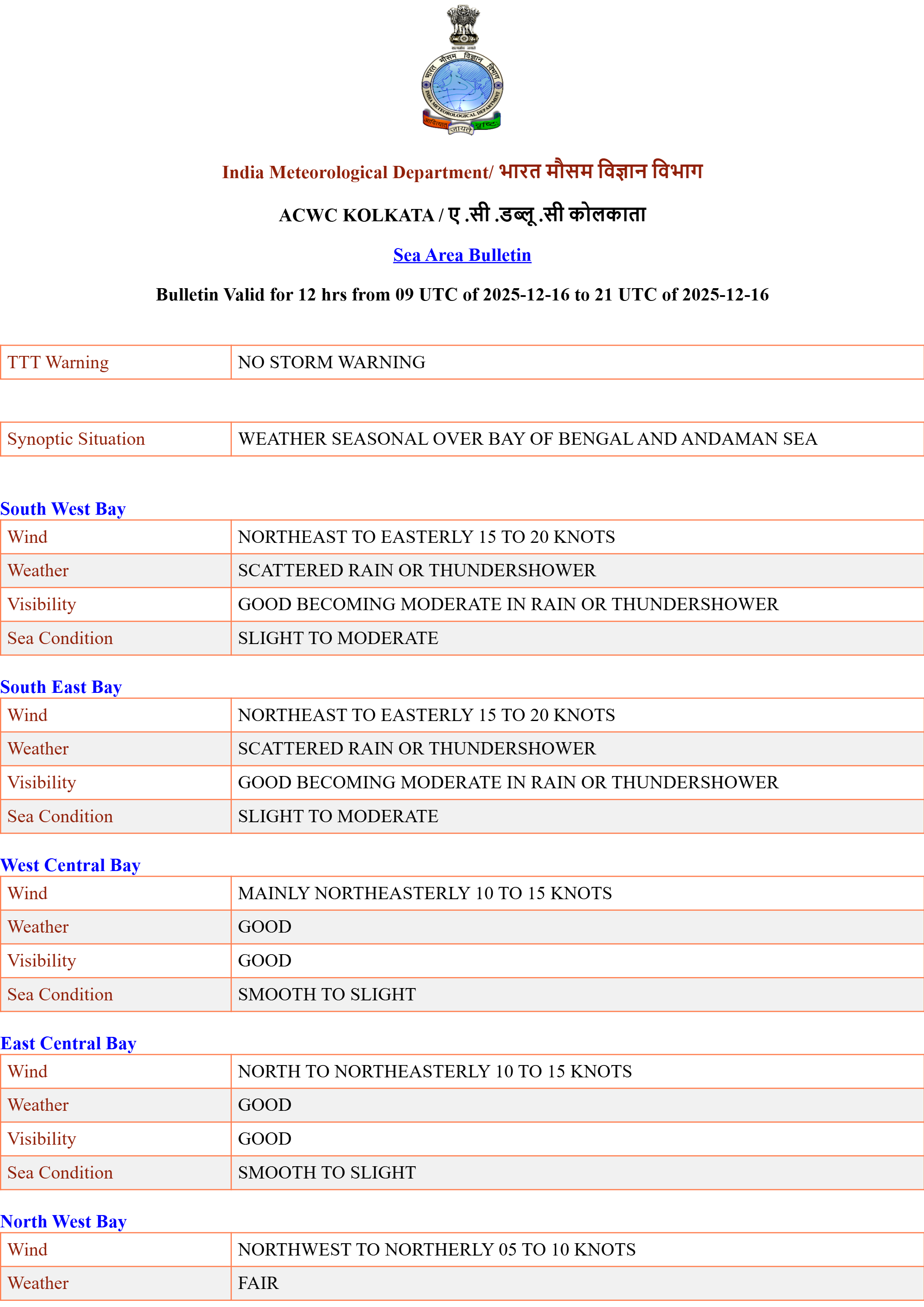 Sea Area Bulletins