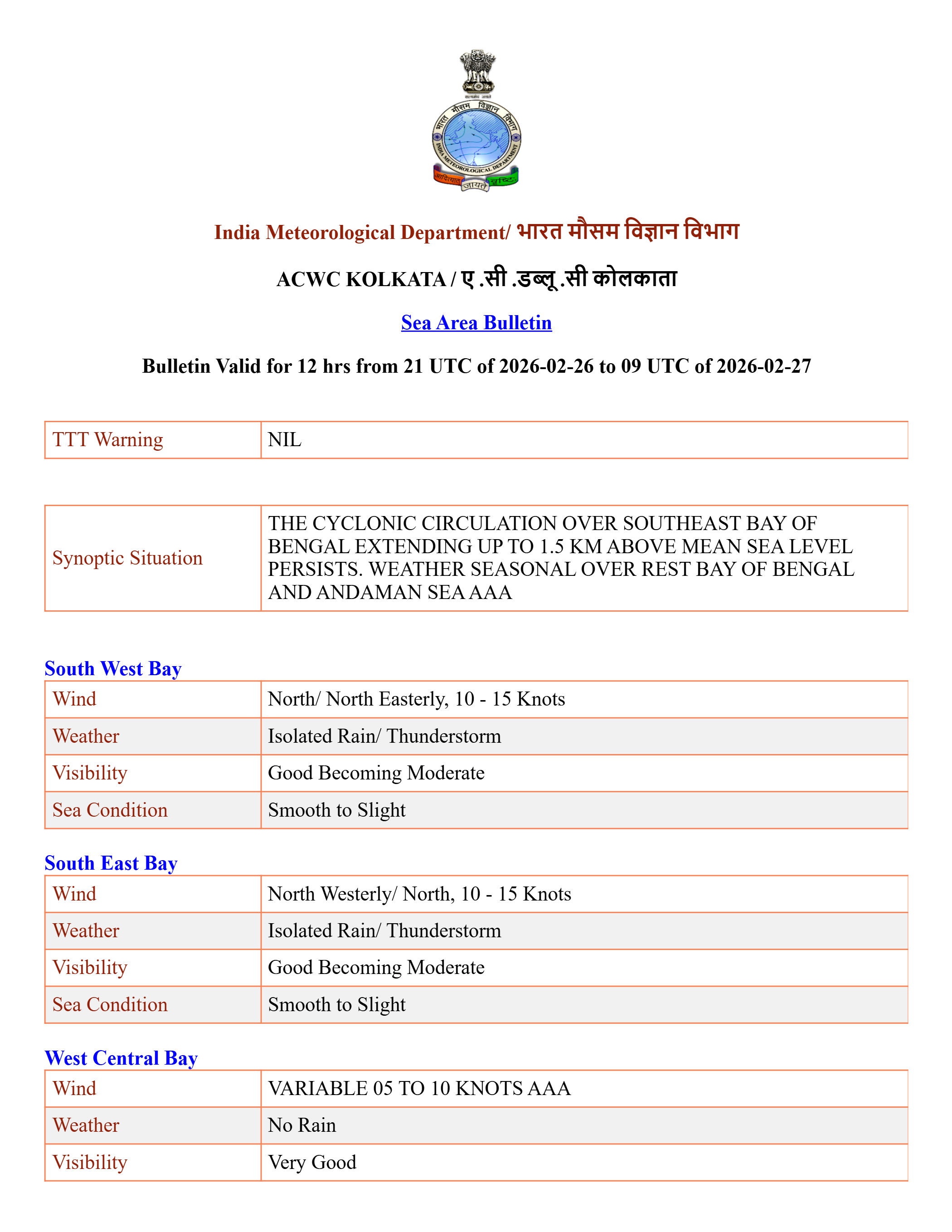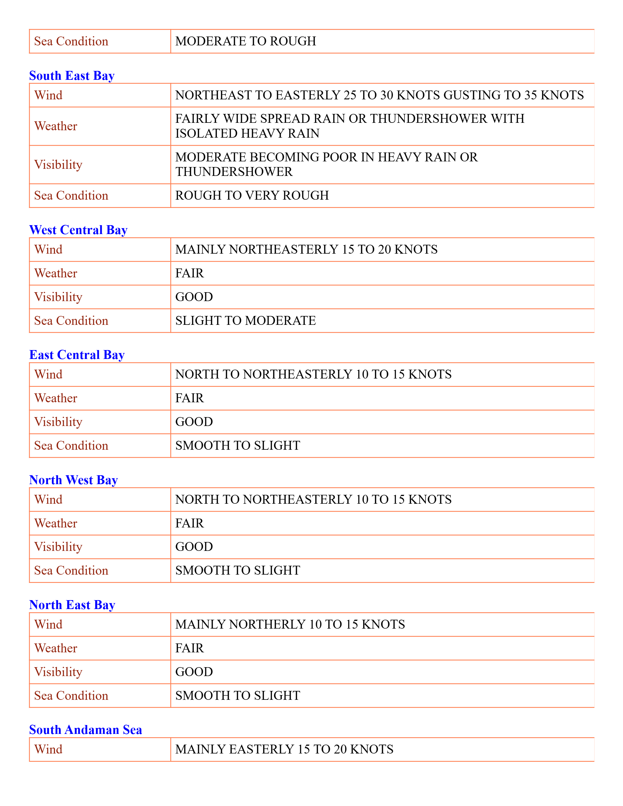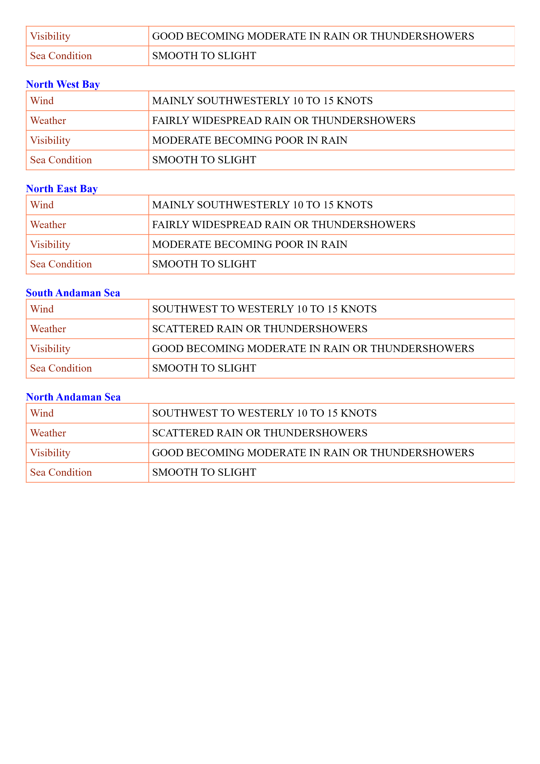 Sea Area Bulletins