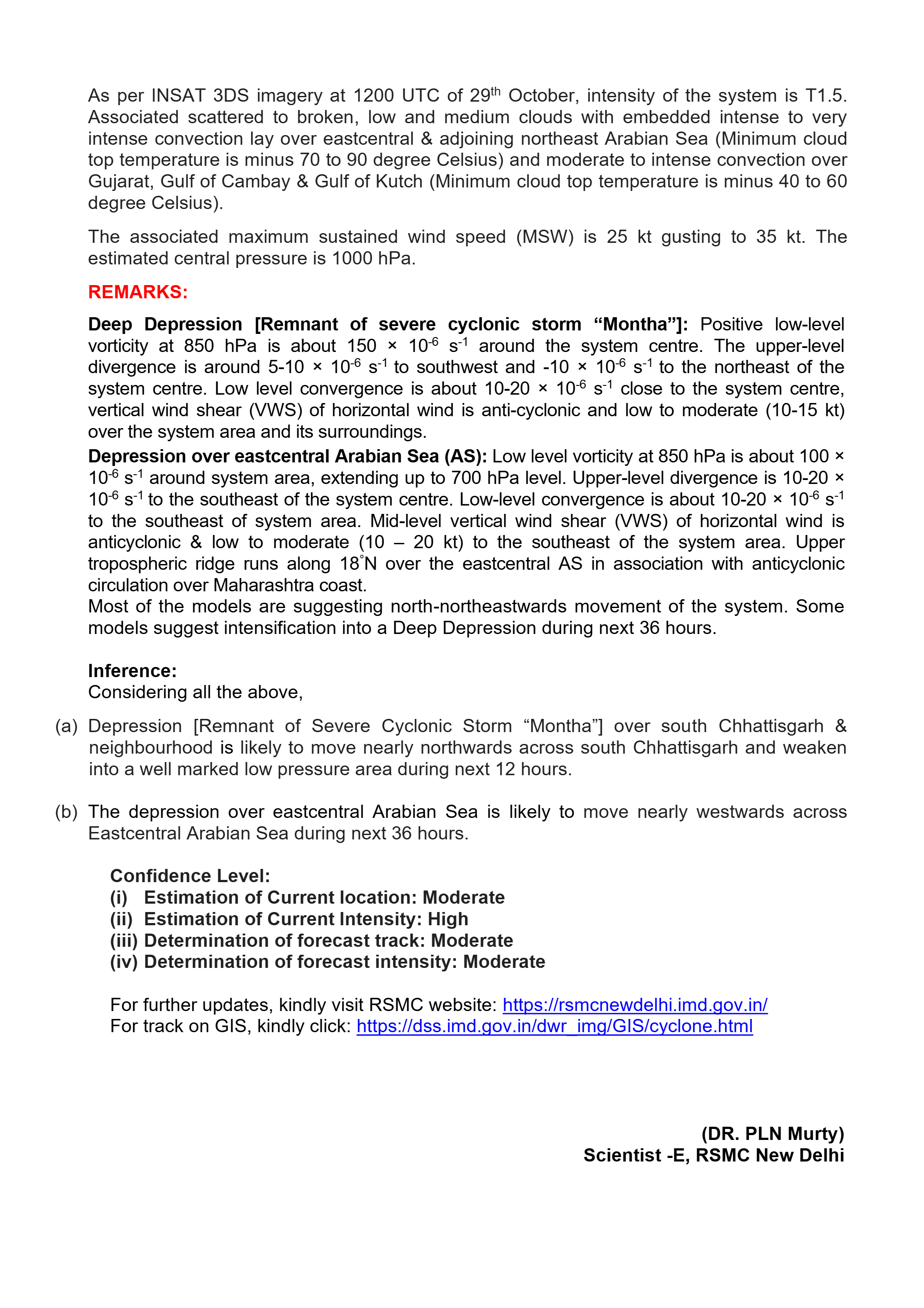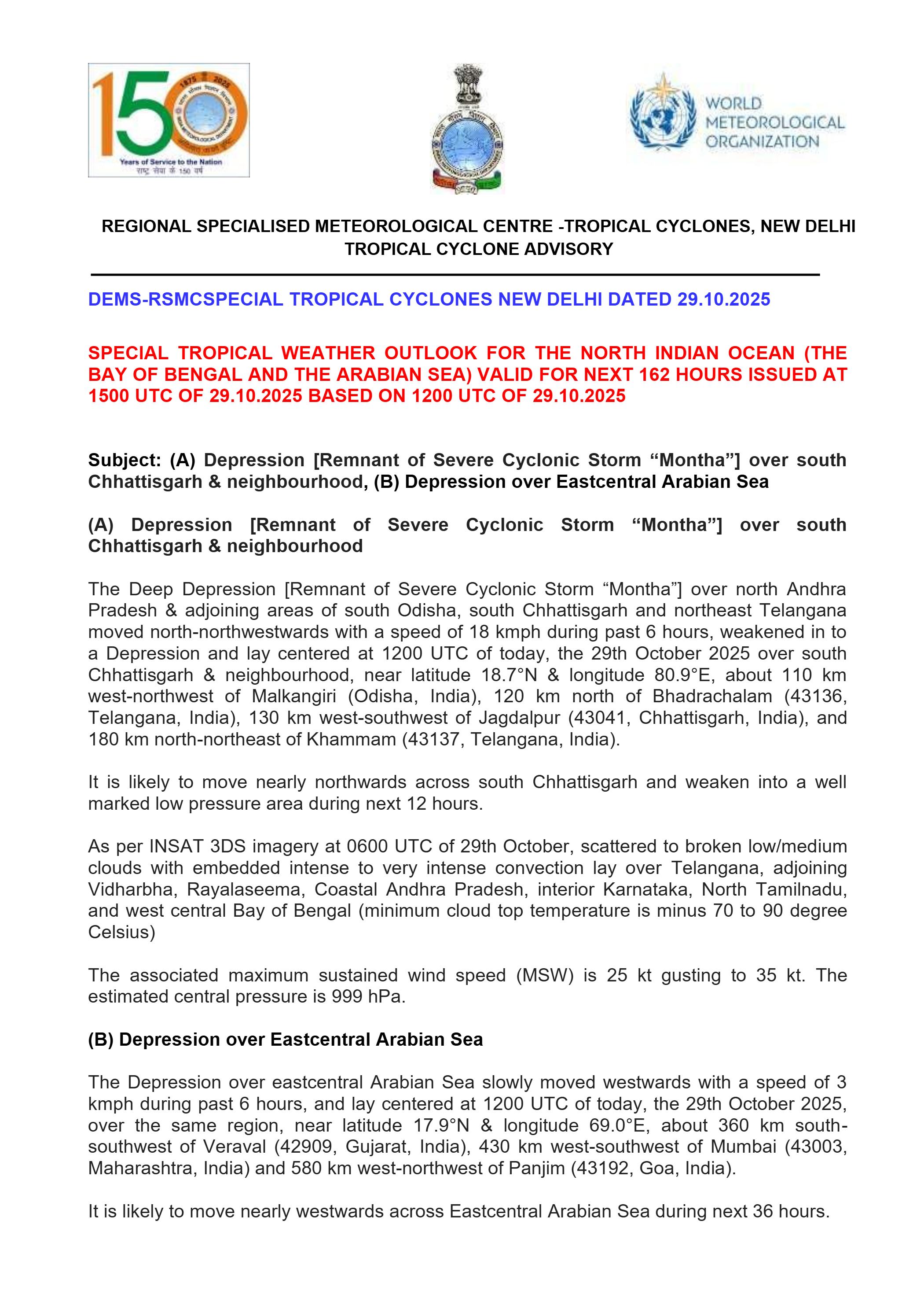 Press Release 29.10.2025: The Cyclonic Storm “Montha” weakened into a Deep Depression