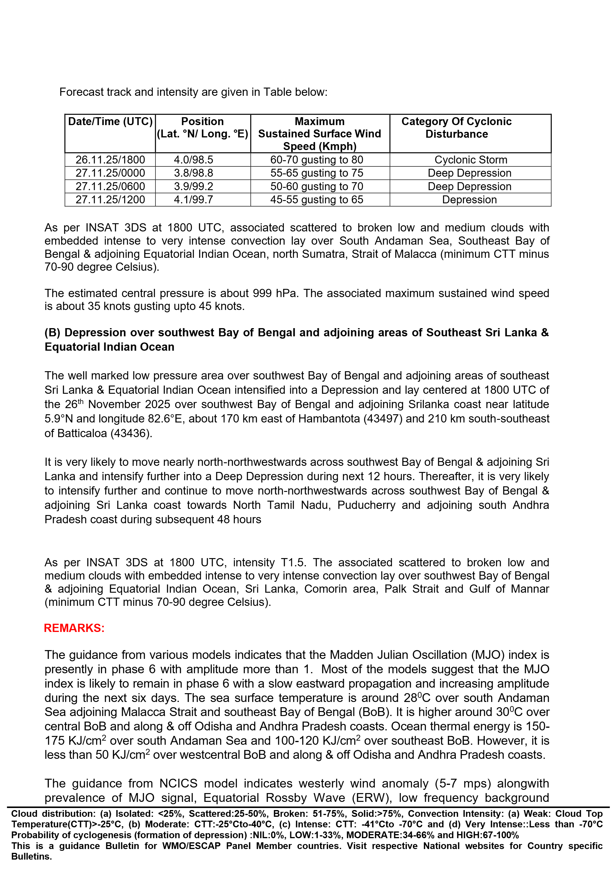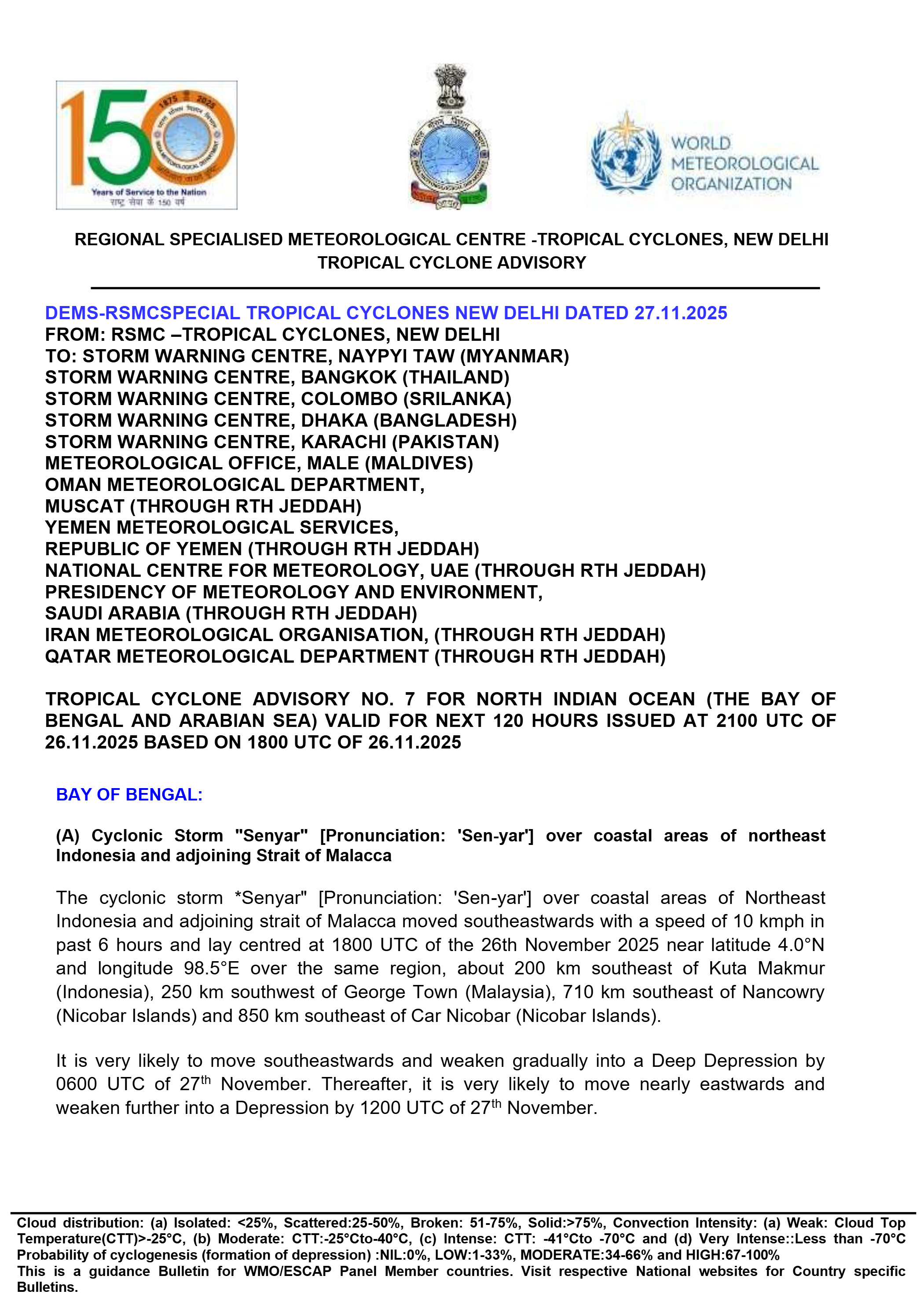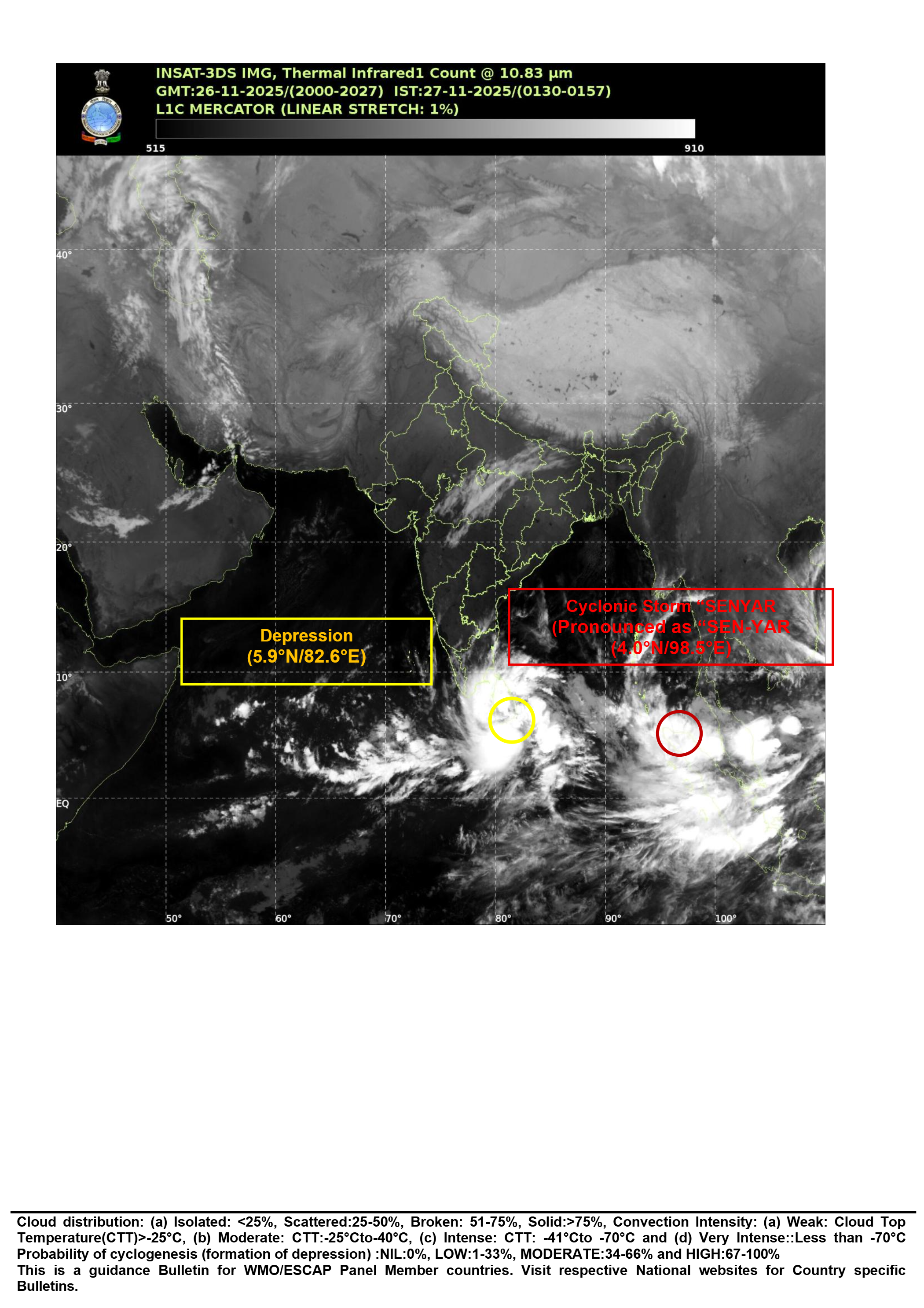 Press Release dated 26-11-2025:Cyclonic storm"Senyar" over Strait of Malacca and adjoining Northeast Indonesia.