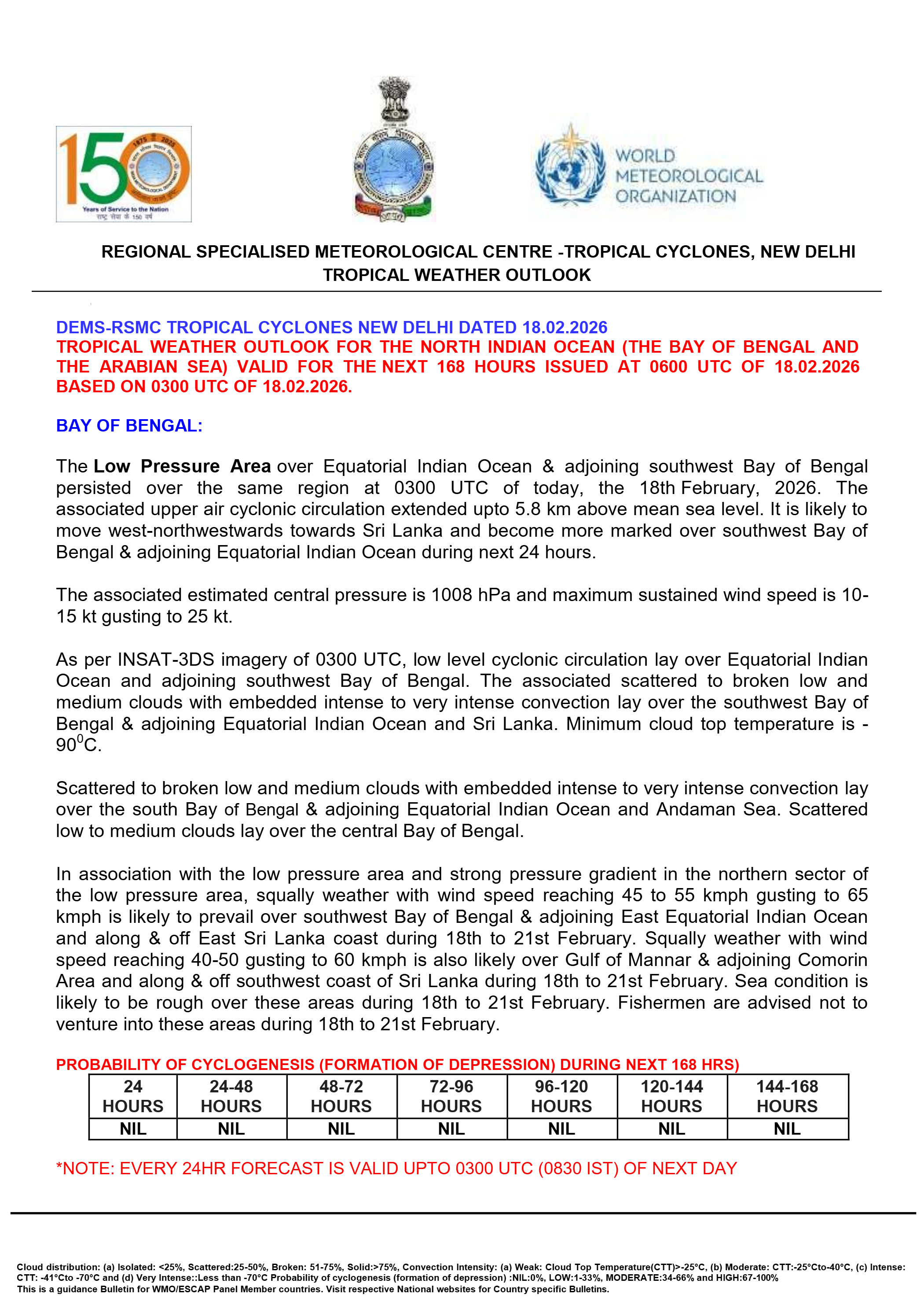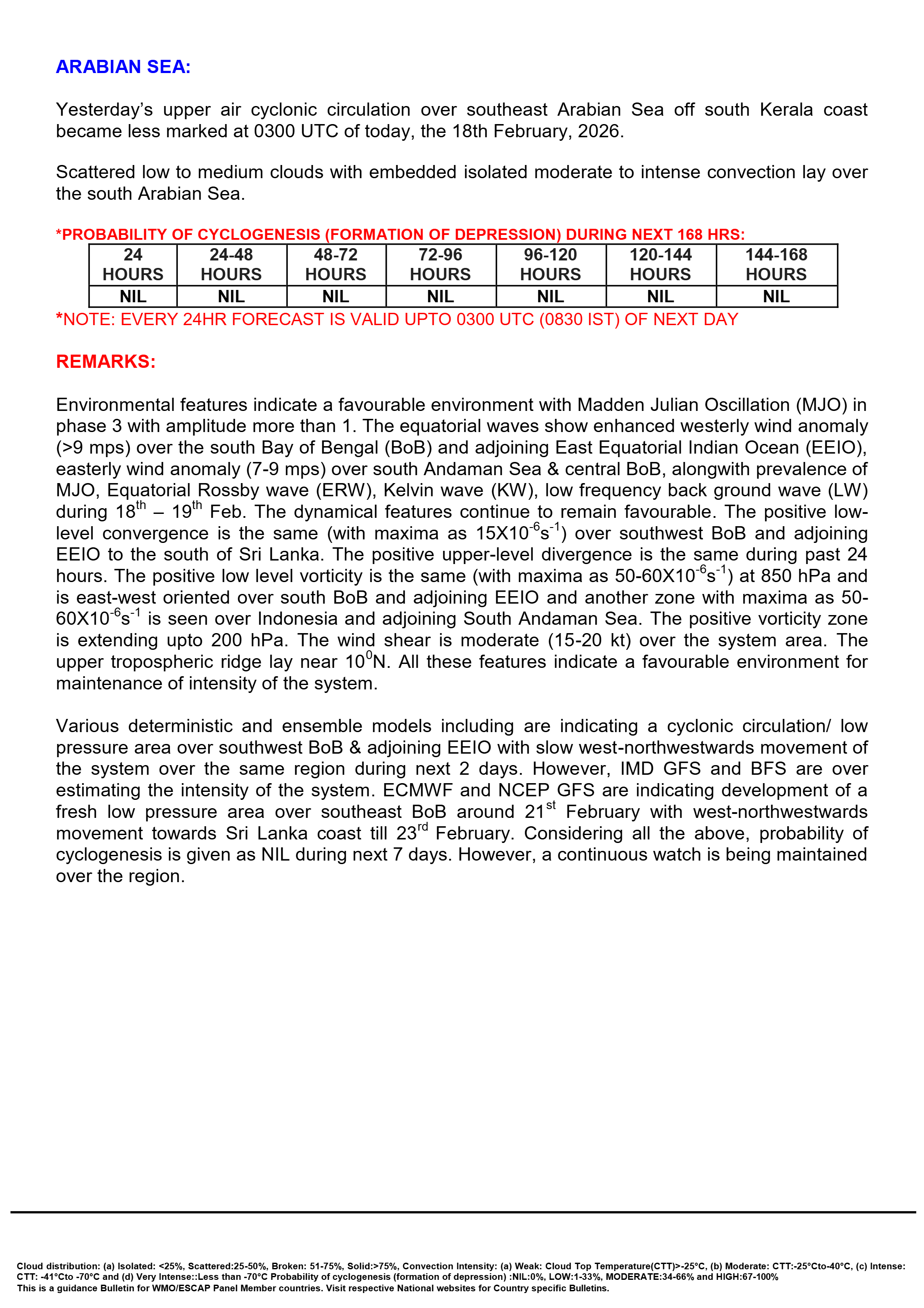 प्रेस विज्ञप्ति 18.02.2026:पश्चिमी विक्षोभ के कारण, 18 फरवरी को पश्चिमी हिमालय क्षेत्र में छिटपुट हल्की से मध्यम वर्षा/बर्फबारी और उत्तर-पश्चिमी भारत के मैदानी