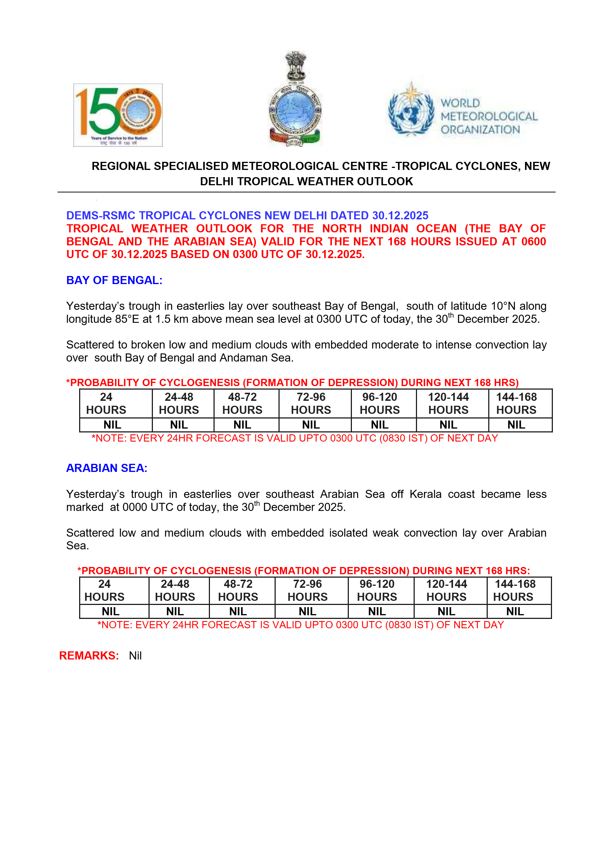 Press Release dated 30-12-2025:Under the influence of Western Disturbance, heavy rain/snow very likely over Jammu-Kashmir-Ladakh-Gilgit-Baltistan-Muzaffarabad during 30th December-01st January.