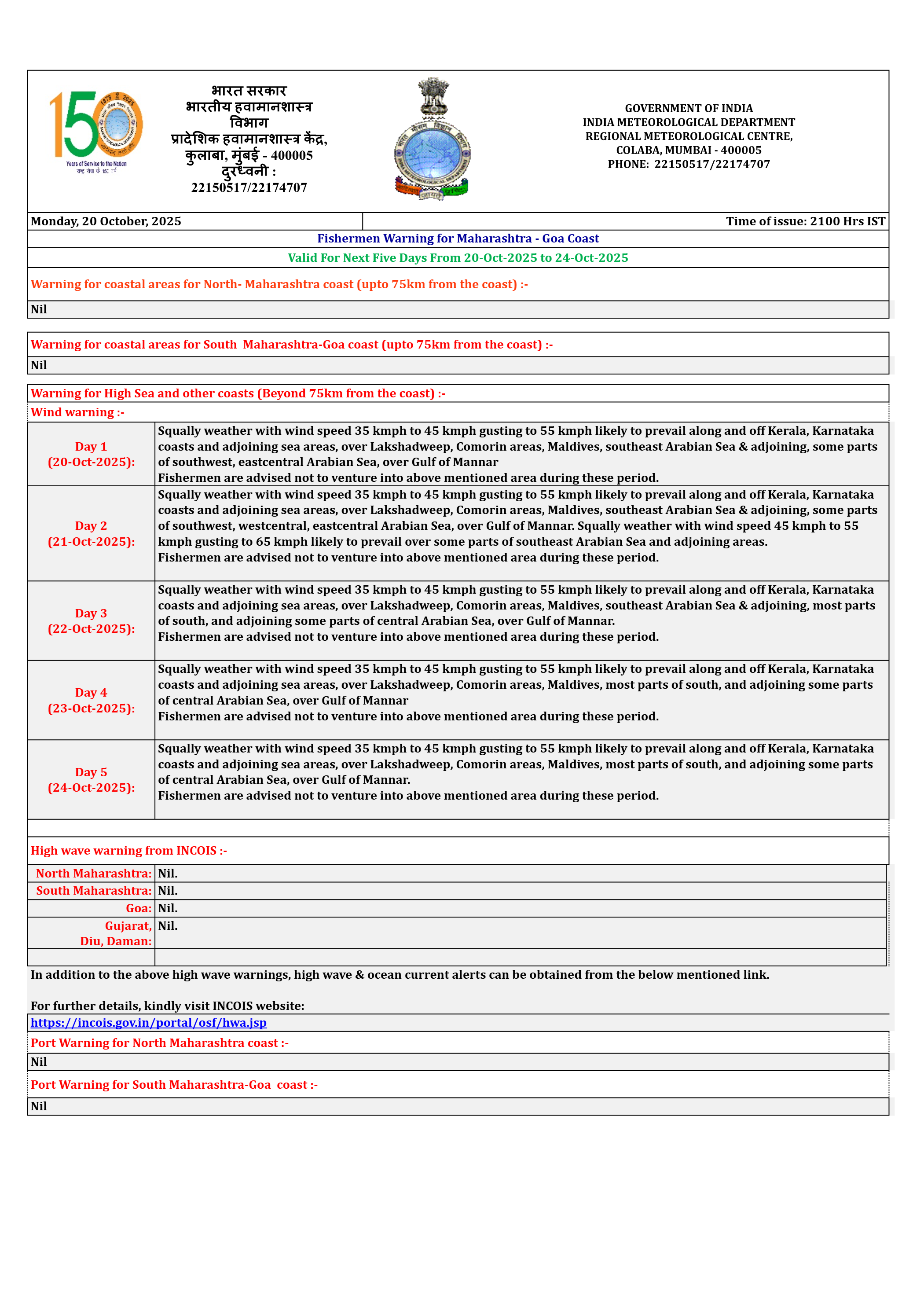 Press Release 23.10.2025: Current Weather Status and Extended Range Forecast for the next two weeks (23rd October to 05th November 2025)